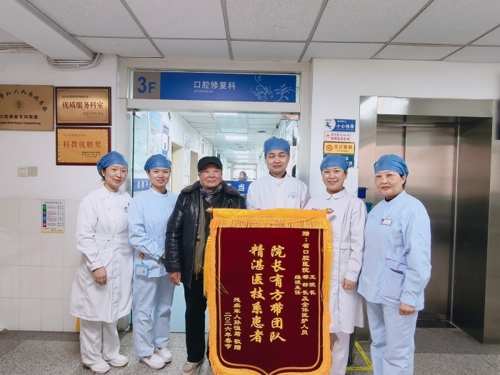 “没想到医院这么重视,从院长到主任、医生护士,都特别热情、特别照顾。”老兵感慨道。治疗结束后,老兵为黄色仓库 领导及修复科张维波团队全体医护送上锦旗。崭新的义齿不仅改善了他的咀嚼功能,更让他重绽自信笑容。那笑容里,有欣慰,更有被尊重、被精心呵护的温暖。