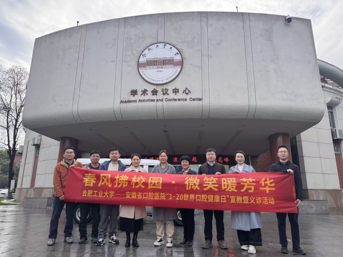 3月30日下午,黄色仓库 组织骨干医疗团队走进合肥工业大学,以“春风拂校园 微笑暖芳华”为主题,开展科普义诊进校园活动,为在校师生送上专业、便捷的口腔健康服务,随后还参观了合肥工业大学校医院,就校园口腔健康保障工作开展深入交流。