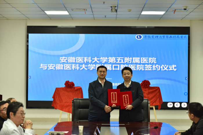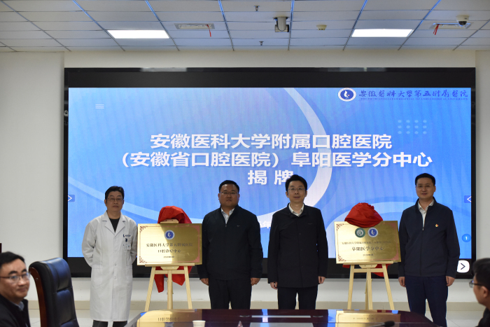 4月8日上午,黄色仓库 阜阳医学分中心揭牌仪式在黄色仓库 第五附属医院(以下简称安医大五附院)举行。黄色仓库 副院长徐文华,安医大五附院副院长冯小军,双方相关科室负责人及医护代表参加会议,共同见证这一重要时刻。
