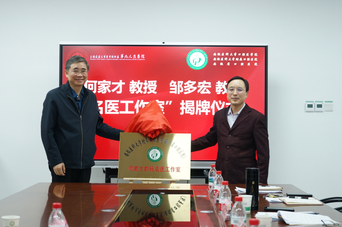 仪式现场,刘颀代表医院党委及全体职工向两位知名教授的倾情加盟致以诚挚谢意。他表示,名医工作室的正式落户,不仅是医院学科建设的“强心针”,更是践行“健康中国”战略的生动注脚。医院将以此为契机,充分发挥工作室的“桥头堡”作用,聚焦口腔疑难杂症诊疗瓶颈,加速前沿技术与临床成果的转化落地,致力于让安徽百姓在家门口即可坐享国内顶尖水平的诊疗服务,切实纾解群众“看专家难、跑腿多”的民生难题。
