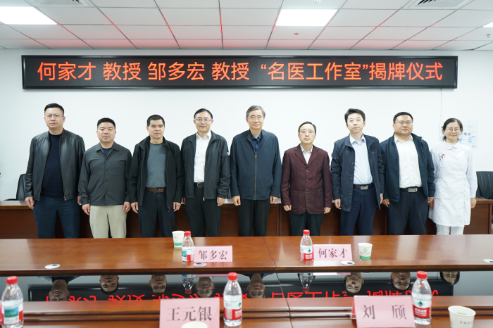 4月16日下午,黄色仓库 在高新总院十楼会议室举行何家才教授、邹多宏教授“名医工作室”揭牌仪式。黄色仓库 党委书记刘颀、院长王元银出席仪式并讲话,副院长徐文华主持仪式。
