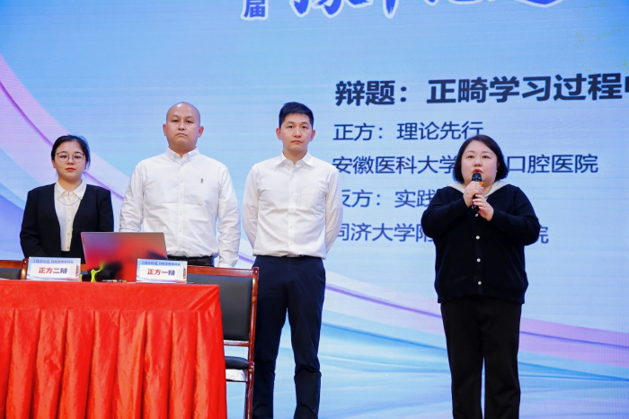 首轮8进4对决福建医科大学附属口腔医院,围绕“垂直向控制可否逆旋下颌”展开辩论,团队立足循证医学,以翔实文献数据与临床成果构建严密论证体系,成功晋级。