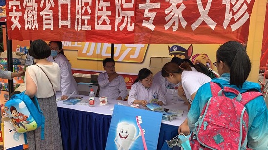联合安徽电视台在瑶海区举办儿童口腔健康宣教及义诊活动。