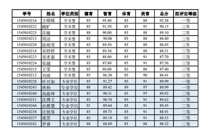2016-2017学年研究生拟评定学业奖学金公示